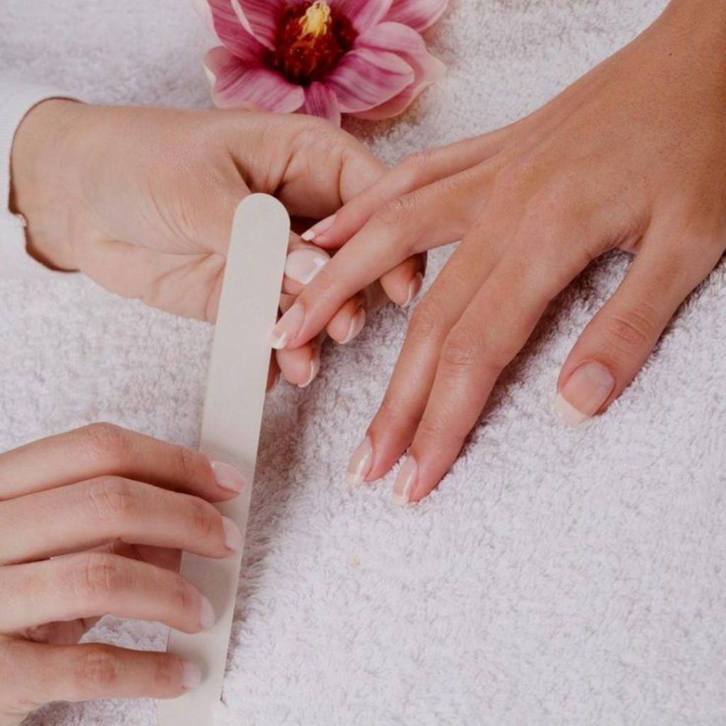 2️⃣ ขัดและตกแต่งหน้าเล็บ – ปรับสภาพเล็บให้เรียบเนียน ลดความเปราะบาง