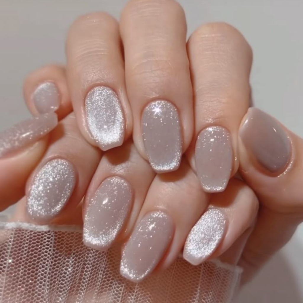 玻璃指甲是一种非常受欢迎的美甲技巧,能够让指甲看起来像镜子或玻璃一样光滑透明。玻璃指甲能够为您的指甲增添光泽感,展现出高贵与魅力。